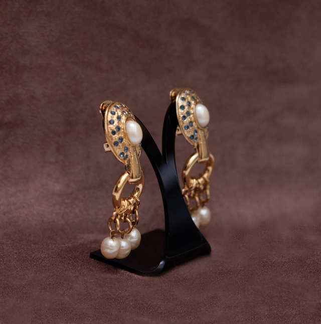 Paire de boucles Baroque or et strass bleus Vintage Agatha (collector)