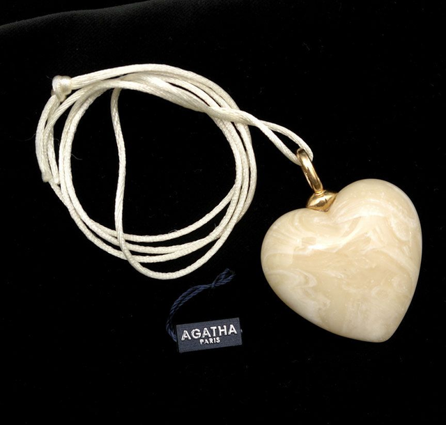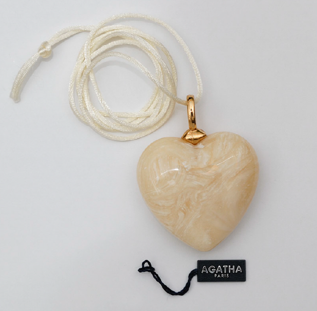 Pendentif Cœur résine pierre nacre passant doré Vintage Agatha (collector)