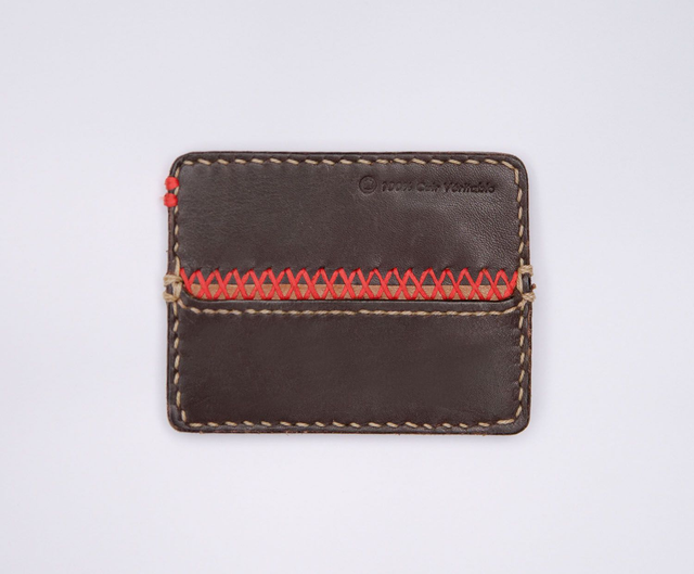 Couleur brun fauve, et brun foncé de qualité, ornementé de fils rouge