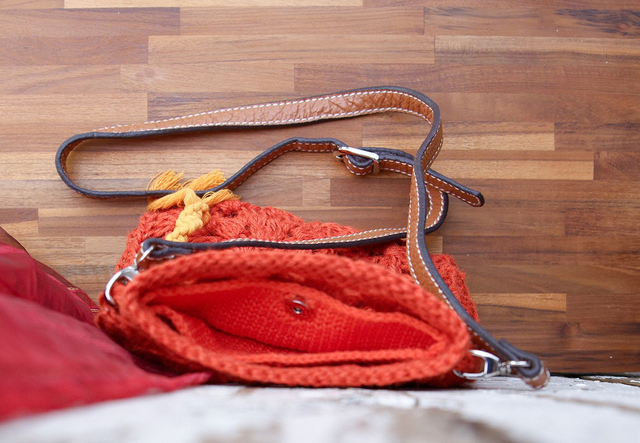 Sangle de sac en cuir vétitable (upcycling), et parties métalliques mousquetons